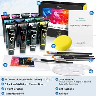 Ohuhu Acrylic Paint Set for Beginners with Tutorial