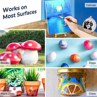 Ohuhu beginners art craft paint kit can use on almost every surface including canvases, rocks, glasses, scrapbooks, wood, ceramic, plant pots, plastic and more.