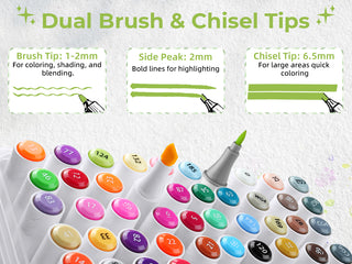 Widen your artistic horizons with the dual-tip marker design! Choose the brush tip for sweeping, calligraphic strokes or quickly color in large areas with the wide chisel tip. What's more, now Ohuhu replacement brush tips is available, so you can easily replace the worn-out tips to ensure consistent and precise lines whenever you create. The only limit is your imagination