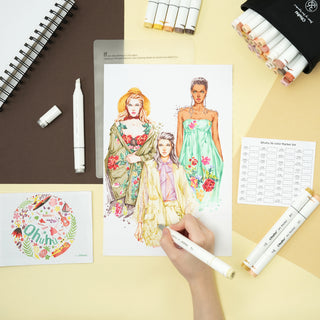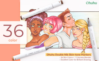 The Ohuhu 36 Skin Tone Marker Pen Set is designed for flesh, face, manga, portrait, illustration, drawing, sketching and other artistic creations. These markers dual tipped with fine tips for detailed lines while chisel-edged tips for wider strokes and easy coverage. The alcohol-based ink is non-toxic, acid-free, and dries in a flash. Besides, the colored caps for hue identification and preventing from volatilization are user-friendly. Also a carrying case keeps all your markers close at hand and convenient for portable use