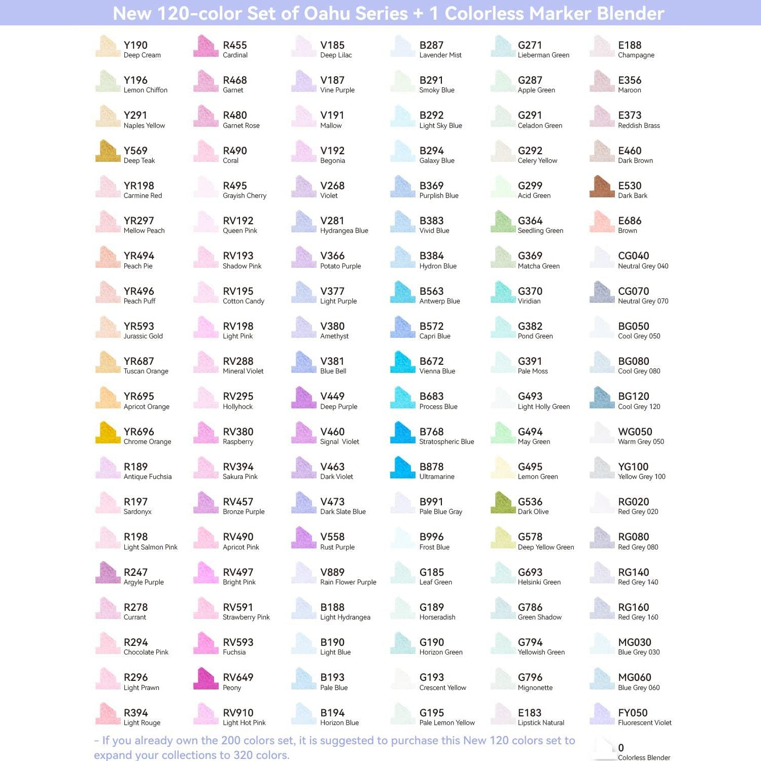 If you already own the 200 colors set, it is suggested to purchase this New 120 colors set to expand your collections to 320 colors
