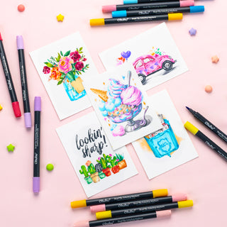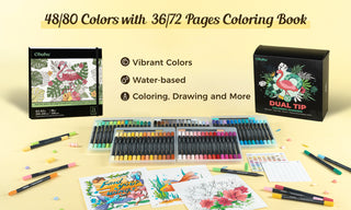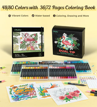 Ohuhu Water-Based Brush & Fine Tip Art Markers with Bleed-Proof Coloring Book are a must-have for your next masterpiece. The 0.5-1.5mm fine tip delivers smooth, precise lines for intricate details, writing, and doodling, while the 1-4mm soft brush tip glides effortlessly for shading, coloring, and blending. Whether you're adding fine details, journaling, or exploring calligraphy, these dual-tip markers offer endless creative possibilities.
