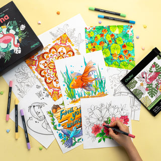 The Ohuhu colouring book and colouring markers are your gateway to a limitless artistic wonderland! Ideal for calligraphy, planners, scrapbooks, posters, and more, our sustainable packaging includes a recyclable marker tray for effortless organisation—say goodbye to marker clutter!